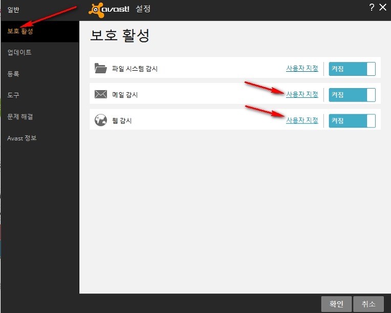5. 인증서 복사가 완료되면 avast 실시간 감시제어 > 모든 감시 사용 으로 원래대로 변경해주세요