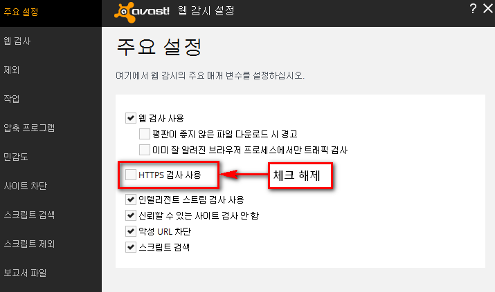 Avast 정보 => 보호활성 으로 들어가셔서 메일감시와 웹감시의 HTTPS(SSL) 체크항목을 해제해 주시면 됩니다.